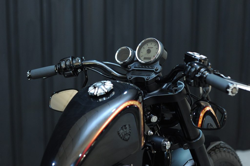 Dikatakan, tema motor ini “Tough Street Bob” dengan alasan utama ingin buat motor kustom yang ringkas, padat dan friendly diajak riding namun dengan mesin besar. “inspirasi awal saya dapat dari Rough Craft, Taiwan. Suka dengan style nya yang simpel dan gagah. Warna juga terpengaruh (hitam),” ungkapnya. Namun untuk detail-detail di motor, menggunakan ide sendiri.