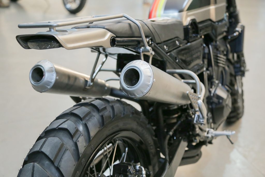 Dari ubahan tersebut, part bawaan yang masih tersisa di antaranya adalah main frame, mesin, shock depan, cakram, master kaliper rem. Sementara sisa lainnya dibuatkan baru atau mengandalkan part aftermarket yang dipadukan dengan sentuhan custom.