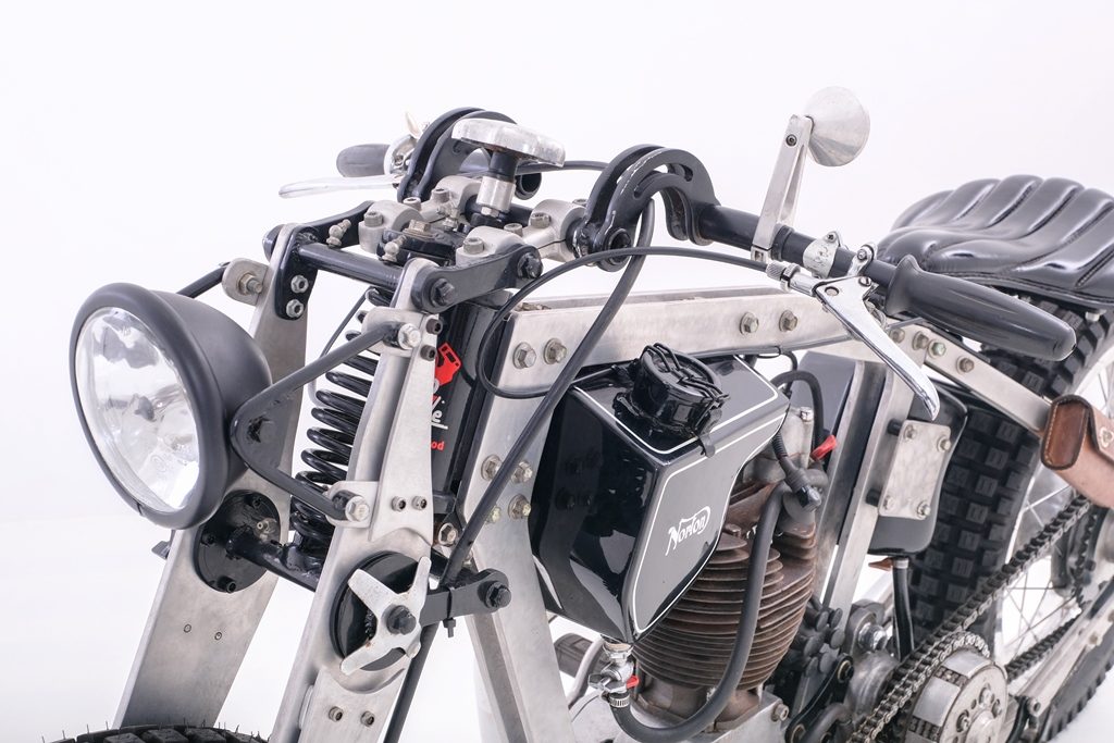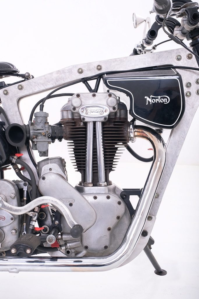 Resto Cycle Garage bahkan memulainya dari bahan atau material yang akan digunakan. Konsep yang diangkatnya terinspirasi dari bahan yang ringan dan kuat. Rangka berkesan seperti sebuah bentuk frame light. Frame tersebut yang akan menopang mesin lawas dari Norton 19S kelahiran 1947. Bisa dibilang pembuatan motor ini dimulai dari nol, sebab, hanya mengandalkan mesin dan girboks saja.
