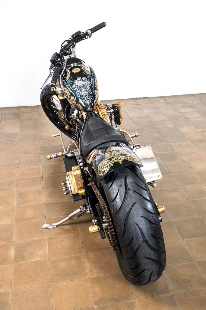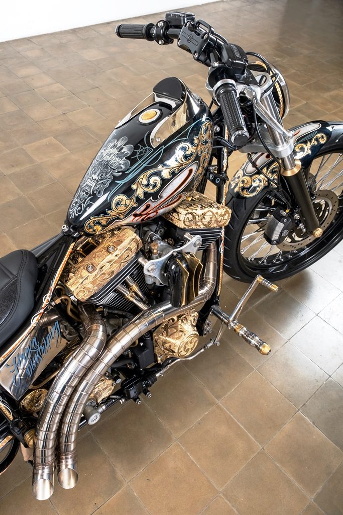 Berawal dari sebuah kekaguman si pemilik motor akan budaya Bali, disematkanlah tema Pulau Dewata pada motor legendaris asal Amerika tersebut. Maka dari itu, tergoreslah sebuah gambar Rangda yang terletak di bagian tengah tanki bahan bakar untuk mewakilkannya.